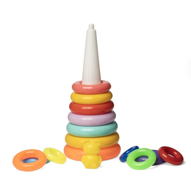 رنگهای درخشان حلقهها به شناخت رنگها کمک میکند. برای شروع اصلاً مهم نیست که کودک ترتیب را رعایت کند، اما در نهایت کودک باید بتواند همهی حلقهها را به ترتیب بچیند و از این راه قدرت حل مسئله را در خود تقویت کند.