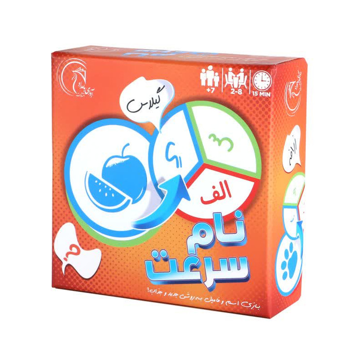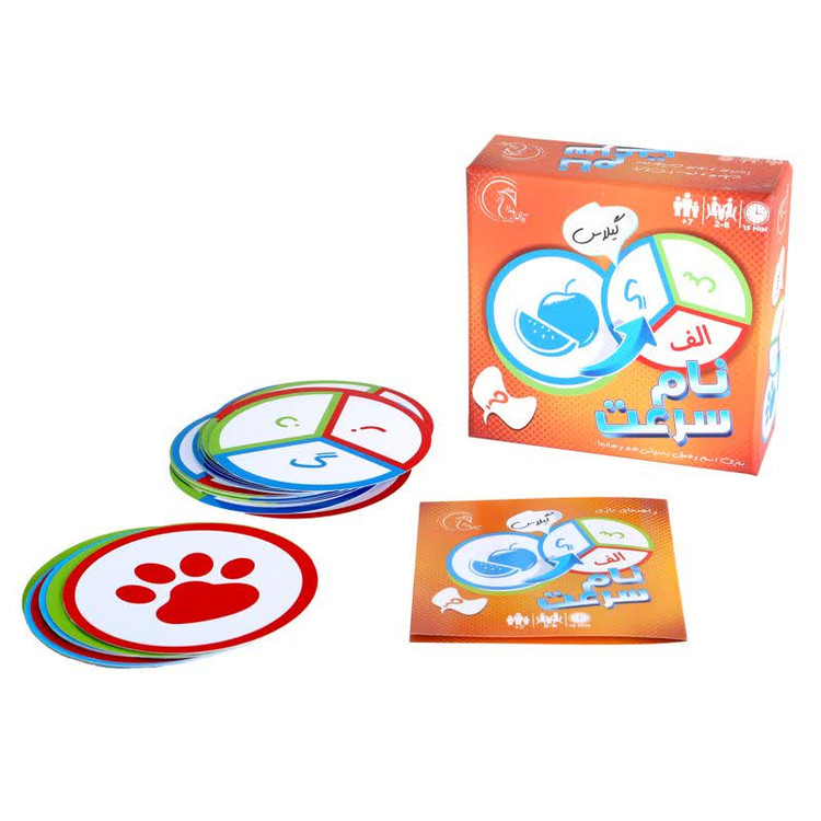 نام سرعت همان بازی آشنا و محبوب اسم فامیل است که به روشی بسیار ابتکاری و البته با سرعتی بالاتر انجام میشود. در این بازی ۱۰ نوع دستهبندی وجود دارد، شامل: نام، میوه، حیوان، رنگ، شهر، کشور، اعضای بدن، اشیاء، غذا و ماشین.