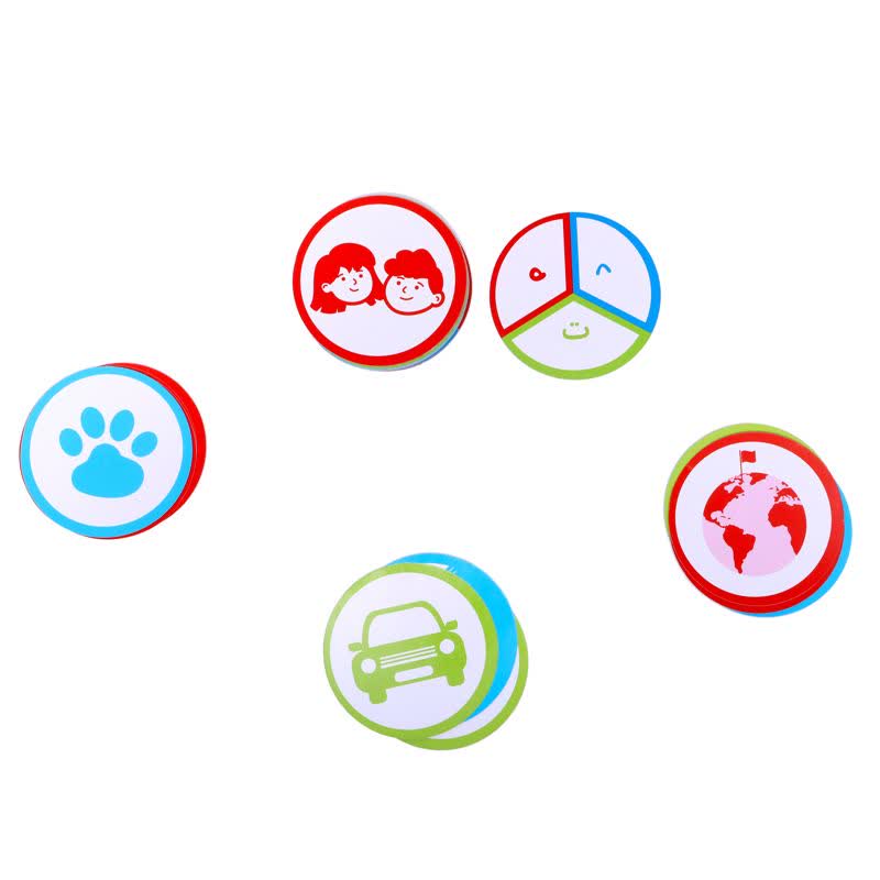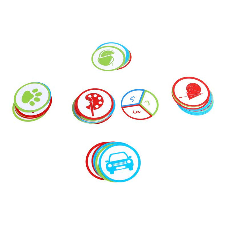 این دستهبندیها به سه رنگ متفاوت در پشت کارتها چاپ شدهاند و روی هر کارت ۳ حرف الفبا به همان سه رنگ وجود دارد.