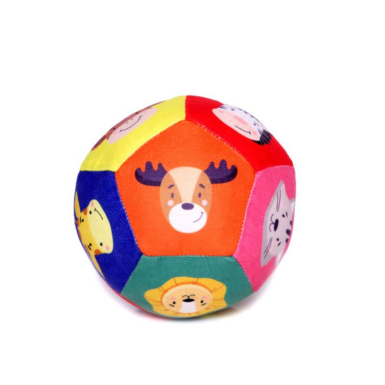 توپ حیوانات که از الیاف نرم و ۱۲ تکه پارچهی مخملین با تصویر ۱۲ حیوان مختلف بر پسزمینههای رنگی درست شده است، از بهترین اسباببازیها برای رشد حرکتی نوزادان محسوب میشود.
