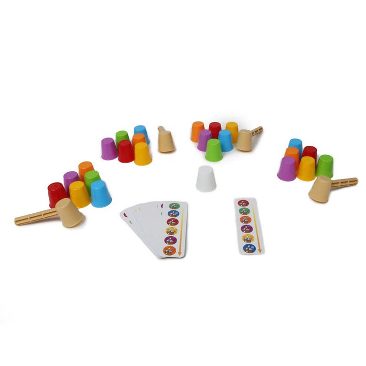 هدف از این بازی افزایش دقت و تمرکز و سرعت عمل بازیکنان است و به این صورت انجام میشود که بازیکنان باید با دیدن کارت چینش، لیوانهای رنگی را به همان ترتیبی که در کارت وجود دارد با چکش لیواندار خود بردارند. با انجام این بازی کودکان علاوه بر لذت بردن از یک بازی رقابتی پر سرعت، با مفهوم ترتیب نیز آشنا میشوند.