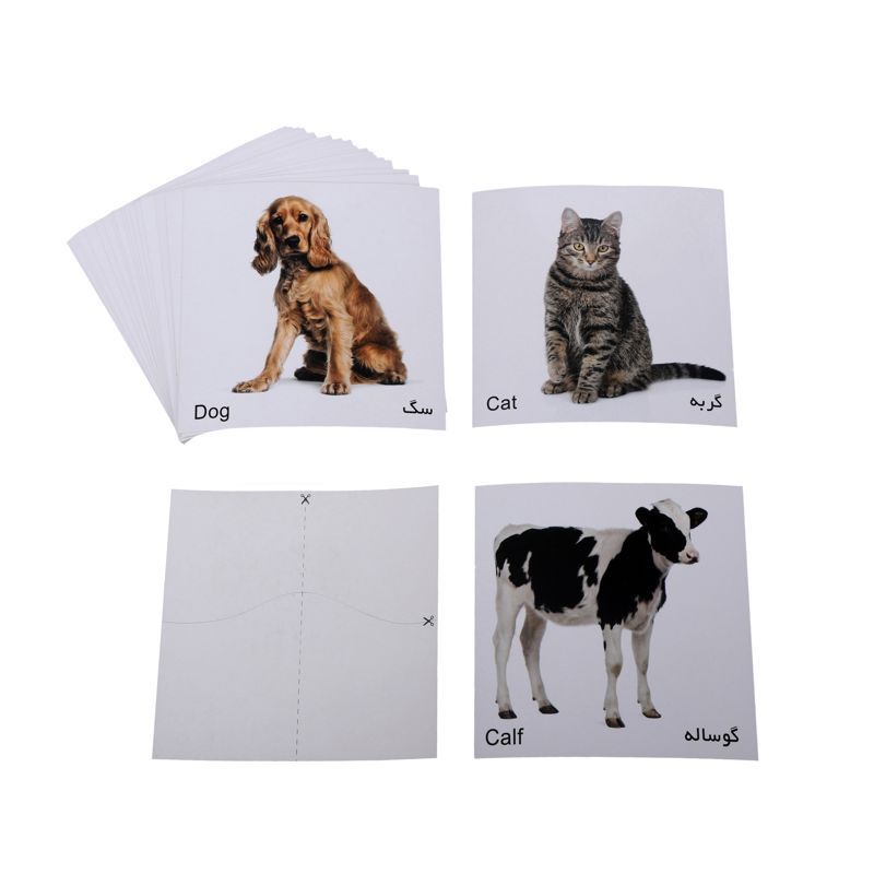 بعد از استفاده از کارتها برای شناخت حیوانات مزرعه میتوان با قیچی کردن خط چینهای پشت آنها پازلهای ۲ یا ۴ قطعه ساخت و به این ترتیب بر قدرت حل مسئلهی کودکان نیز افزود.