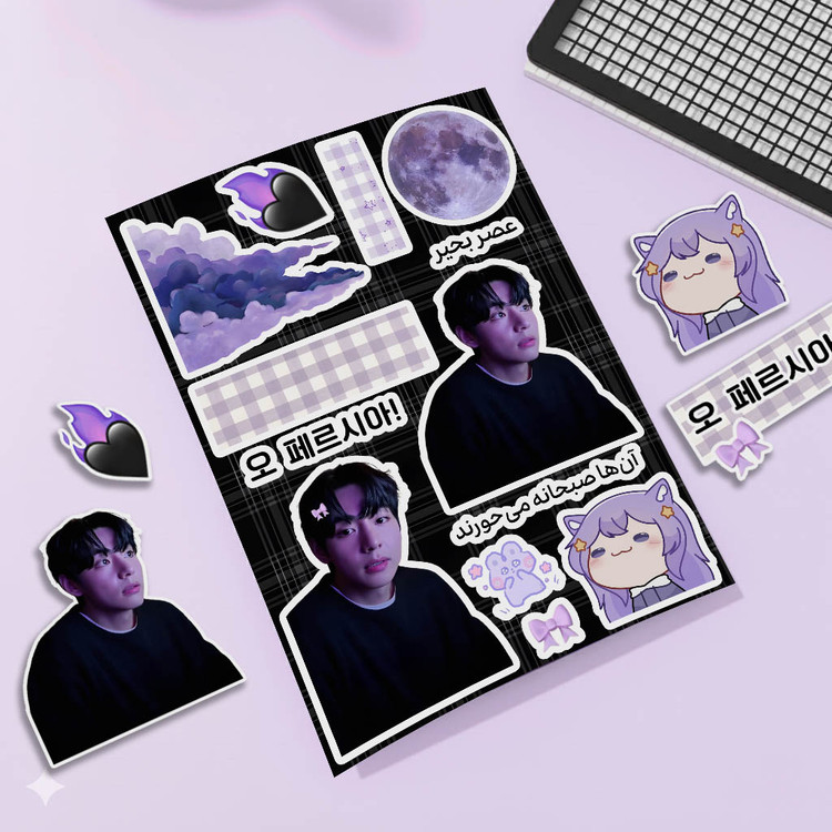 ♡ یه برگه پر از استیکرای خوشگل و کیوت : سایز هر برگ A6 هستش (حدود ۱۰×۱۵ سانتیمتر) که واسه خودش یه دنیای کوچیک و بامزست ♡