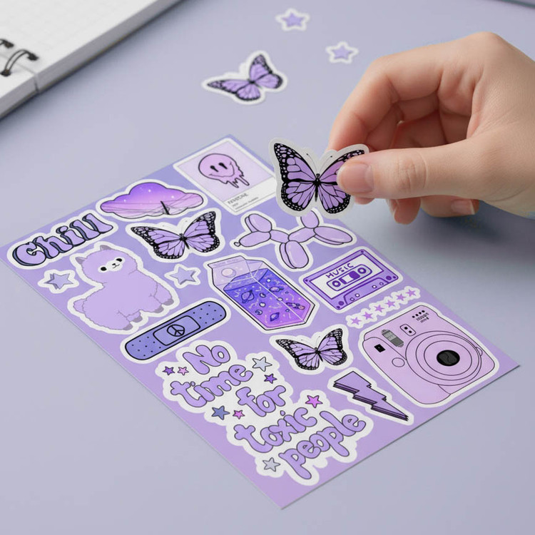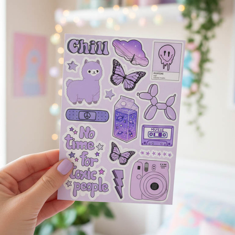 ♡ یه برگه پر از استیکرای خوشگل و کیوت : سایز هر برگ A6 هستش (حدود ۱۰×۱۵ سانتیمتر) که واسه خودش یه دنیای کوچیک و بامزست ♡