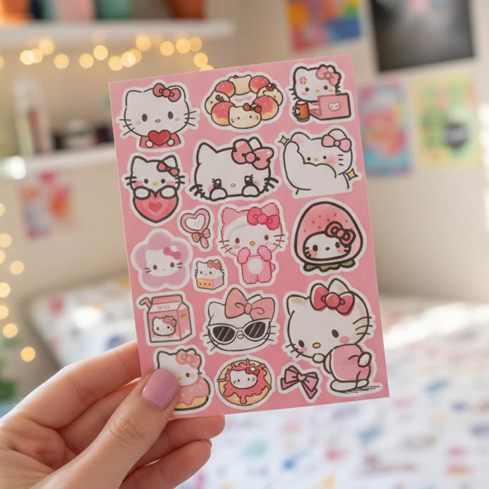 ♡ یه برگه پر از استیکرای خوشگل و کیوت : سایز هر برگ A6 هستش (حدود ۱۰×۱۵ سانتیمتر) که واسه خودش یه دنیای کوچیک و بامزست ♡