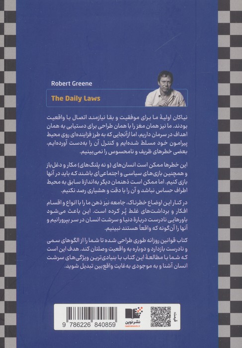 تابهحال چند بار در زندگیتان احساس کردهاید که یک جای کارتان میلنگد؟! کتاب قوانین روزانه یک راهنمای جذاب و موثر برای هر روز شماست که رابرت گرین آن را نوشته است. همراه شدن با این اثر که جزو پرفروشترین کتابهای نیویورک تایمز است، به شما کمک میکند، روزهایتان را با یک نظم درست و ماندگار جلو ببرید و در نهایت به موفقیت و قدرت دست یابید.