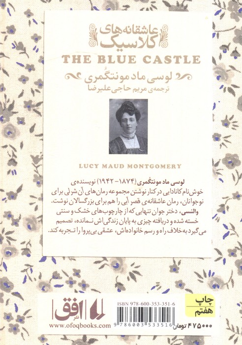 لوسی ماد مونتگومری، یکی از مشهورترین نویسندگان ادبیات کلاسیک و خالق برخی از محبوبترین کاراکترهای تاریخ ادبیات، از جمله آن شرلی است. او در سرتاسر جهان با داستانهای کودک و نوجوان فوقالعادهاش شناخته میشود. رمان قصر آبی یکی از معدود آثار داستانی این نویسنده است که برای مخاطب بزرگسال نوشته شده است. البته که در طی حدود یک سده پس از نگارش کتاب، میلیونها خوانندهی جوان و نوجوان همراه با این دختر بیچاره و نترس خندیده، گریه کرده و برای رهایی و خوشبختیاش آرزو کردهاند