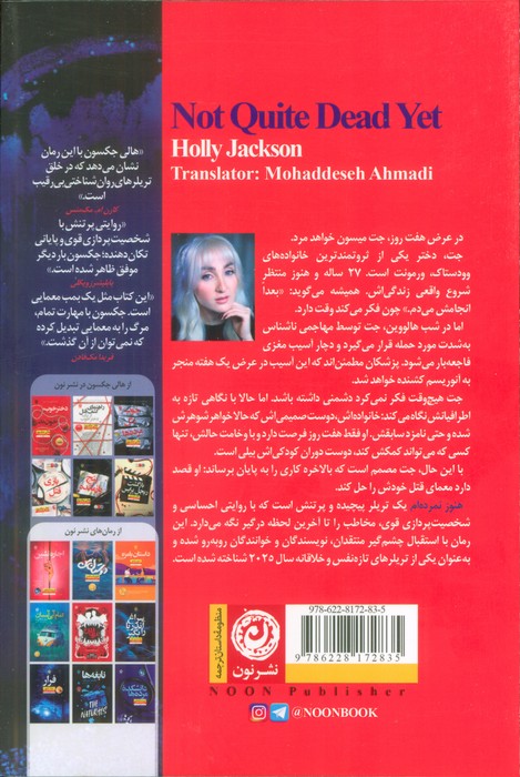 جت هفت روز دیگر میمیرد. زمان زیادی نیست؛ بهخصوص اگر کسی بخواهد در این زمان کوتاه معمای قتل خود را حل کند! کتاب هنوز نمردهام نوشتهی هالی جکسون، داستانی معمایی و جنایی است که ما را همراه با دختری بهنام جت میسون در موقعیت عجیبی قرار میدهد. این دختر مورد سوءقصد قرار گرفته و با توجه به آسیبی که به مغزش وارد شده، فقط یک هفته تا مرگ فاصله دارد. او باید در این مدت کوتاه کسی که قصد جان او را کرده، پیدا کند. شایان ذکر است که این کتاب در سال 2025، از سوی خوانندگان گودریدز بهعنوان برندهی جایزهی «بهترین رمان معمایی و هیجانی» انتخاب شده است.