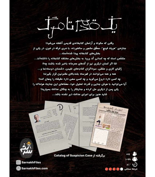 آيا ميتوانيد با هوش جنايي و قدرت تحليل خود، معمّاهاي اين جنايت هولناک را يکي پس از ديگري حل کرده و جنايتکار را به چنگال عدالت بسپاريد؟