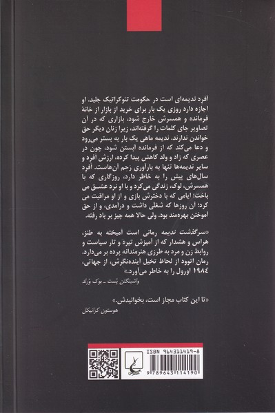 یک روز صبح از خواب بیدار میشوید و تمام چیزهایی را که در زندگی دارید، از شما میگیرند. وضعیت اضطراری اعلام شده است. رئیس جمهور را به ضرب گلوله ترور کردهاند و تمامی اعضای کنگره را به رگبار بستهاند. جوی خون به راه انداختهاند و به دنبال همین خونِ روان است که حکومت جدید اعلام وجود میکند: جمهوری جلید. حکومت جدید، قانون اساسی را لغو کرده و قوانینی سفت و سخت و باورنکردنی بر اساس تفاسیر معوج از کتاب انجیل ارائه میدهد تا به خیال خودش حکومت آرمانی مسیح را بر زمین مستقر کند. قوانین جدید، زندگی شما را زیر و رو میکند و کوچکترین کارهای روزمره را تحت کنترل مستقیم خود میگیرد؛ تصمیماتی مانند ازدواج، طلاق و... دیگر امری شخصی نیست و باید بر اساس دستورات حکومتی صورت بگیرد. بر اساس این قوانین، زندگی پیشینِ شما مردود است و شخصی ناهنجار محسوب میشوید. باید همسرتان، دخترتان، شغل و خانهی کوچکتان را رها کنید و بپذیرید که جزوی از اموال یکی از قانونگذاران حکومت جدید هستید. به کابوس میماند. درست است؟ این داستان زنی به نام آفرد است که با زبان خود او در کتاب سرگذشت ندیمه (The Handmaid’s Tale)، به قلم مارگارت اتوود (Margaret Atwood)، روایت میشود.
