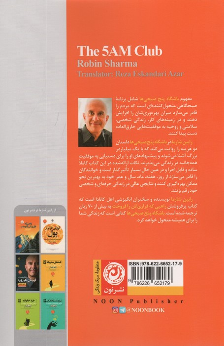 کتاب باشگاه پنج صبحیها نوشتهی رابین شارما که یکی از تاثیرگذارترین آثار دربارهی موفقیت و روانشناسی خودسازی به شمار میآید، تاکنون به چندین زبان در کشورهای مختلف ترجمه شده است. این کتاب در قالب داستانی آموزنده به شما کمک میکند تا با سحرخیزی و انجام تمرینهایی خاص به خواستههای خود برسید.
