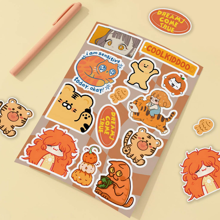 ♡ یه برگه پر از استیکرای خوشگل و کیوت : سایز هر برگ A6 هستش (حدود ۱۰×۱۵ سانتیمتر) که واسه خودش یه دنیای کوچیک و بامزست ♡