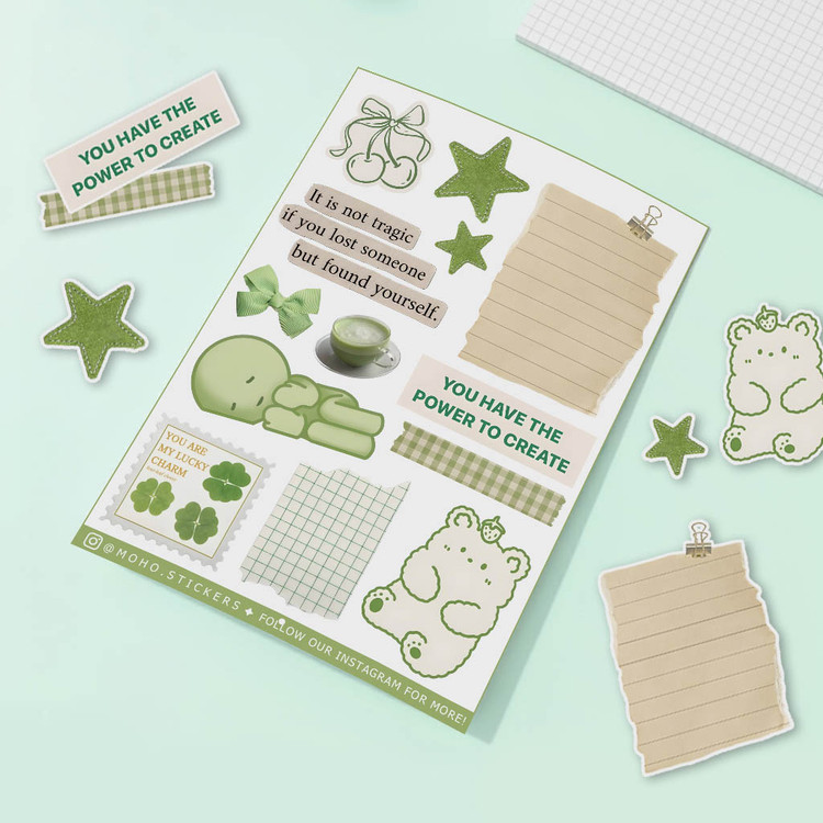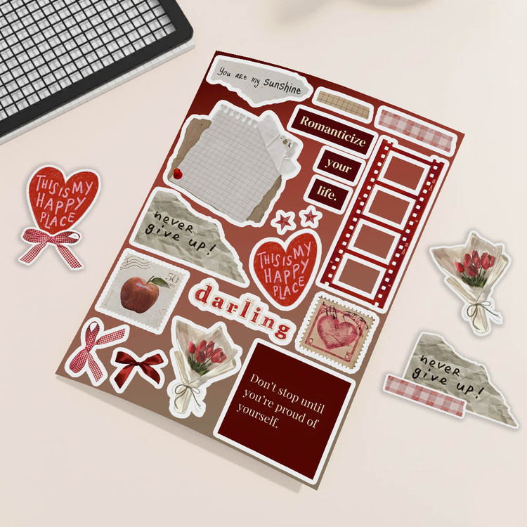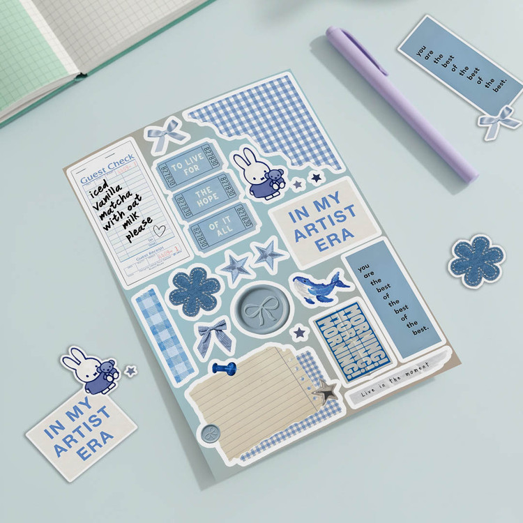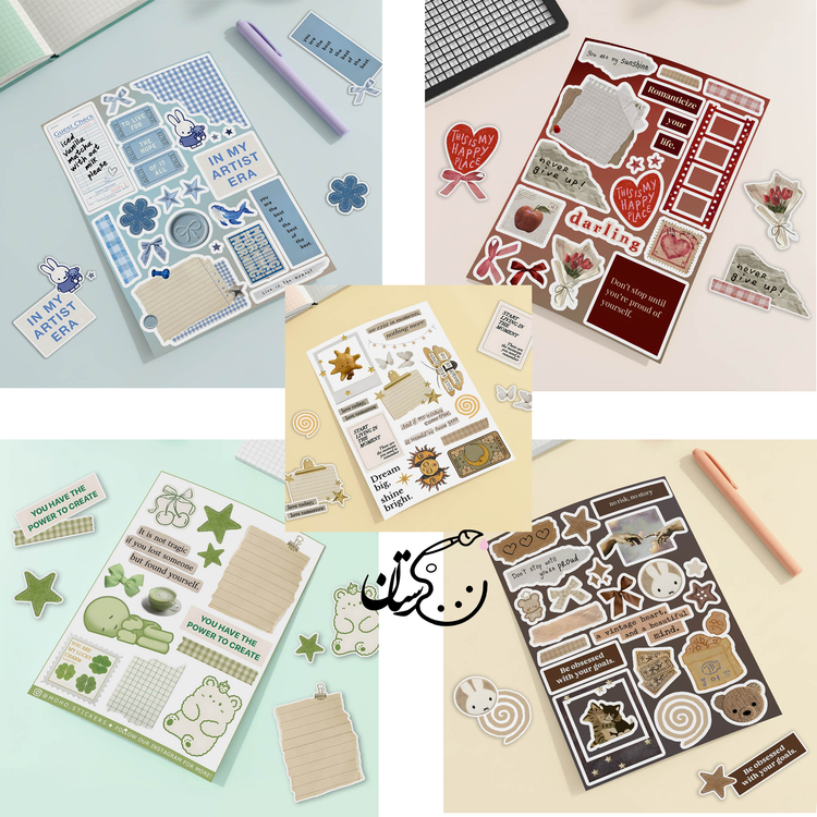 ♡ 5 برگ استیکر پر از طرحای خوشگل و کیوت : سایز هر برگ A6 هستش (حدود ۱۰×۱۵ سانتیمتر) که واسه خودش یه دنیای کوچیک و بامزست ♡
