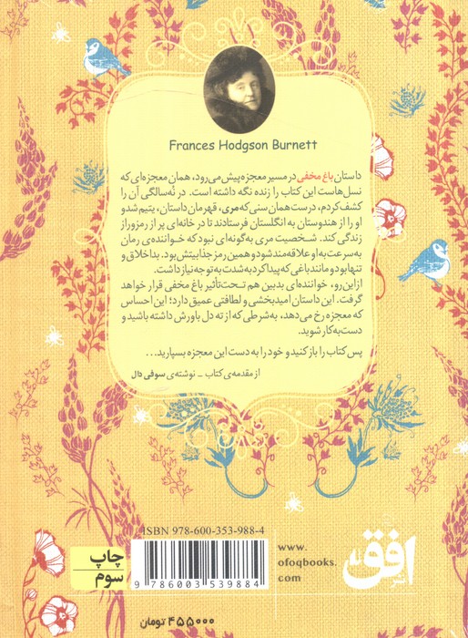 کتاب باغ مخفی یک رمان کلاسیک در ادبیات کودک و نوجوان به شمار میآید که به قلم فرانسس هاجسون برنت به نگارش درآمده است. داستانی خواندنی که ماجراجویی مری در خانهی اشرافی عمویش را روایت میکند. کنجکاویهای این دختر او را به باغی مخفی میرساند، باغی پرماجرا که در حال پژمردگی است اما مری تصمیم دارد زندگی را به آن برگرداند، بیآنکه بداند قرار است با چه اتفاقاتی روبهرو شود.
