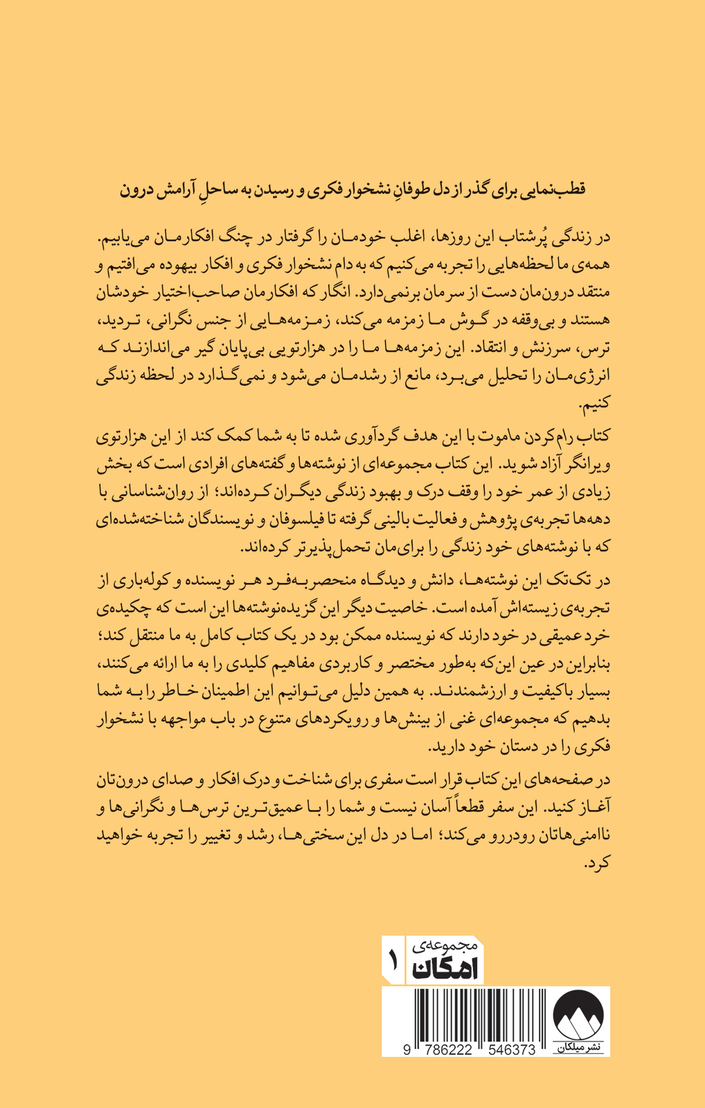 در تکتک این نوشتهها، دانش و دیدگـاه منحصربهفرد هر نویسنده و کولهباری از تجربهی زیستهاش آمده است. خاصیت دیگر این گزیدهنوشتهها این است که چکیدهی خرد عمیقی در خود دارند که نویسنده ممکن بود در یک کتاب کامل به ما منتقل کند؛ بنابراین در عین اینکه بهطور مختصر و کاربردی مفاهیم کلیدی را به ما ارائه میکنند، بسیار باکیفیت و ارزشمندنـد. به همین دلیل میتوانیم این اطمینان خاطر را به شما بدهیم که مجموعهای غنی از بینشها و رویکردهای متنوع در باب مواجهه با نشخوار فکری را در این کتاب مییابید.